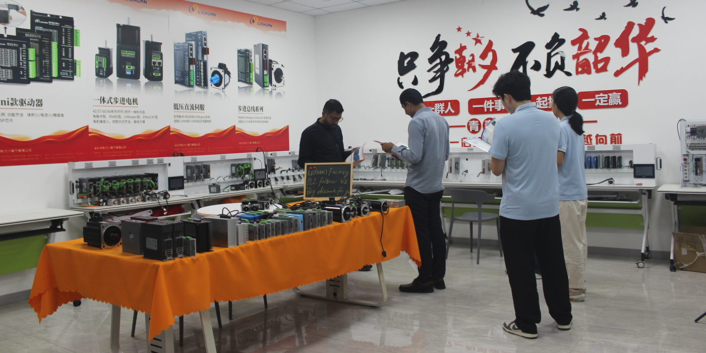 Accompagnato da Liu Feng, direttore generale di Xinlichuan e Core Team, la delegazione ha condotto un tour approfondito del centro di ricerca e sviluppo dell'azienda, del seminario di produzione e della sala espositiva di prodotti. Come impresa leader nel settore del controllo dell'automazione industriale cinese, Xinlichuan ha messo in mostra la sua gamma completa di prodotti a trap. Questi prodotti, noti per la loro alta precisione, affidabilità e efficacia in termini di costi, sono ampiamente utilizzati in oltre 100 settori come macchine utensili CNC, macchinari tessili e imballaggi e stampa. Nell'officina di produzione, la delegazione ha ispezionato le linee di produzione automatizzate e le rigide processi di controllo della qualità, esprimendo un elevato riconoscimento per il sistema di gestione intelligente di Xinlichuan e Il personale tecnico ha dimostrato il funzionamento delle attrezzature e i test delle prestazioni in loco, con i rappresentanti dei clienti che partecipano a esperimenti di risposta dinamica per i servi motori. Hanno affermato fortemente le caratteristiche dei prodotti di avvio/arresto rapido, posizionamento preciso e funzionamento a basso rumore.